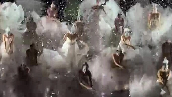 Một trong những phân đoạn ấn tượng là cảnh đàn chim công xuất hiện. Các vũ công tạo hình thành từng lớp cánh chim,chuyển động nhịp nhàng như một sinh thể sống. Những màn múa đôi,múa đơn khắc họa cảnh chim công gọi bạn tình,phô bày vẻ đẹp trong mùa sinh sản,giúp khoe kỹ thuật múa.