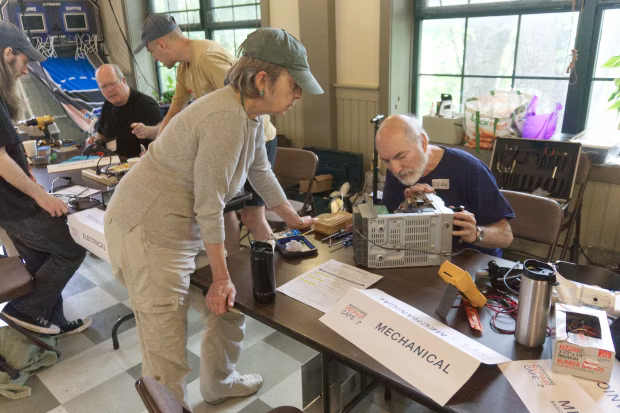 Dean Gallea,một kỹ sư nghỉ hưu mở "Repair Café" giúp hàng xóm sửa đồ gia dụng hỏng. Ảnh: WSJ