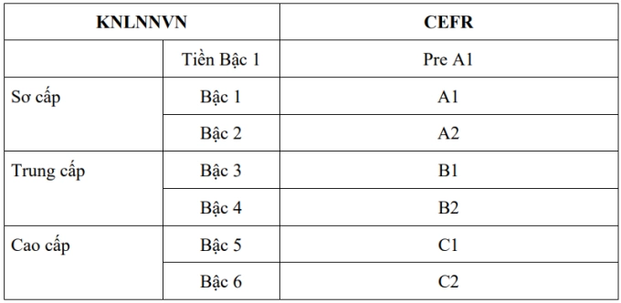 Ngoài cấp độ từ A1 đến C2, khung năng lực ngoại ngữ dùng cho Việt Nam dự kiến có thêm Pre-A1 (tiền Bậc 1), cùng mô tả chi tiết hơn về năng lực cần đạt ở mỗi kỹ năng.